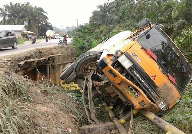 DURI (HR)- Diduga sopir dalam kondisi mengantuk, kecelakaan lalu lintas tunggal terjadi di wilayah Kecamatan Pinggir, Rabu (14/10).