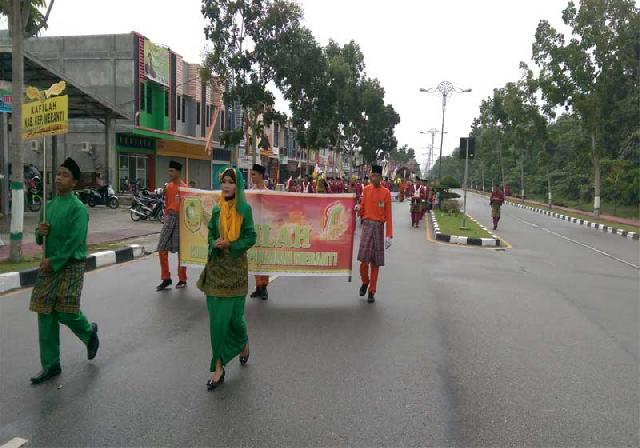 Rombongan pawai Khafilah Kabupaten Kepulauan Meranti sendiri dipimpin langsung oleh Ketua DPRD Meranti Fauzy Hasan SE, yang tampak begitu bersemangat.