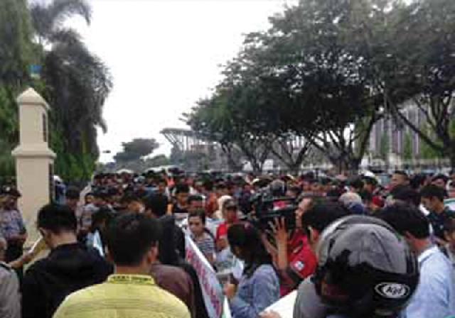 PEKANBARU (HR)-Ribuan massa Forum LSM Riau Bersatu, Kamis (26/11), mendatangi Kantor Kejaksaan Tinggi Riau. Mereka meminta Kejati Riau fokus menuntaskan kasus korupsi yang mengendap, dan tidak tergiring pada opini pencemaran nama baik Plt Gubri Arsyadjuliandi Rachman.