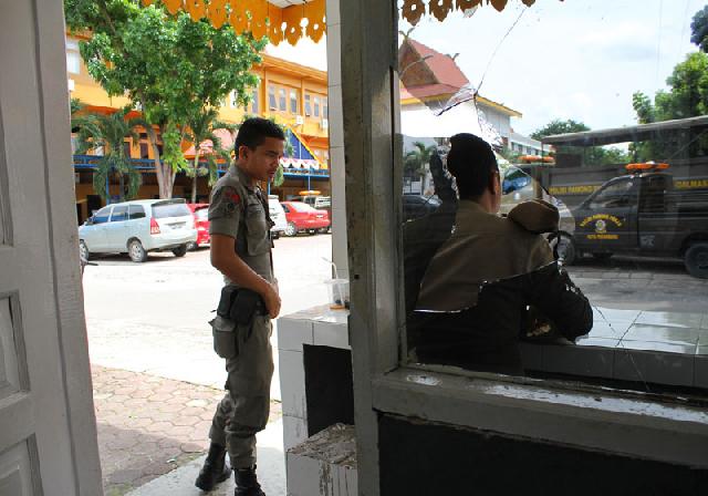 Pantauan di Markas Satpol PP Pekanbaru, Selasa siang kemarin, beberapa aset yang berada di dalam kantor tampak rusak. Begitu pula pada pos penjagaan belakang, masih terlihat bekas dari pecahan kaca jendela. Sedangkan kondisi di belakang kantor, beberapa jeruji pagar tampak patah.