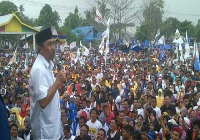 SIAK (HR)-Mengetahui hasil sementara real count unggul, Rabu (9/12), Calon Bupati Siak Syamsuar mendatangi posko kemenangan Syamsuar-Alfedri di Jalan Sapta Taruna, Siak. Kedatangannya disambut gembira masyarakat Kabupaten Siak yang berada di posko tersebut.