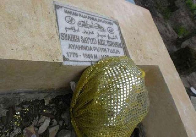 Komplek Makam Syeikh Sayyid Aziz Ibarahim berada dalam kawasan rawa-rawa yang sudah mengering dan lokasi lebih tinggi dari tanah sekitarnya. Dalam komplek tersebut ada tiga makam, yakni makam Syaik Sayid Aziz Ibrahim, Pangeran Aceh dan makam Panglima Fathurullah. Syeikh Sayid Aziz Ibrahim gugur pada pertempuran melawan tentara Aceh dalam mempertahankan daerah Dumai. Diperkirakan hidup sekitar 1770-1850.