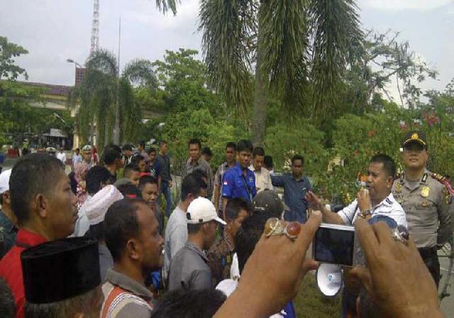 Pangkalan Kerinci (HR)-Jelang pelaksanaan pleno rekapitulasi perolehan suara Komisi Pemilhan Umum (KPU) Pelalawan, sekelompok massa mendatangi Gedung Daerah Mangku Diraja, Rabu (16/12).