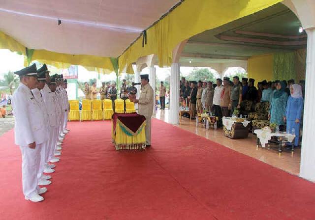 TEMBILAHAN (riaumandiri.co)-Bupati Indragiri Hilir HM Wardan, melantik kepala desa se-Kecamatan Pelangiran sekaligus meresmikan Sekolah Menengah Atas Negeri 1 Pelangiran, Selasa (5/1).