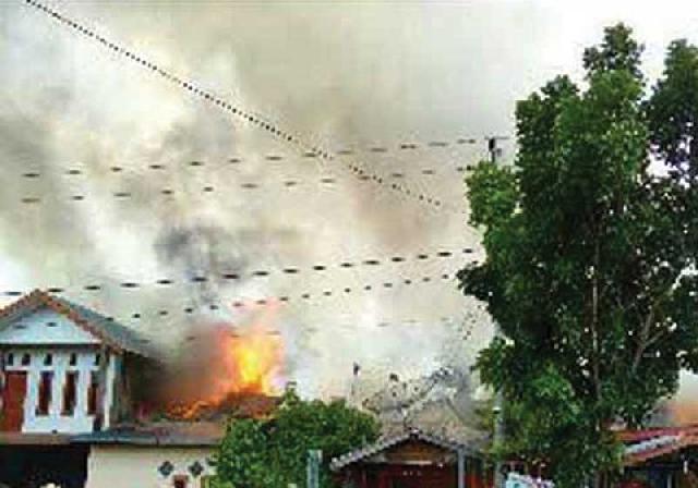 Kebakaran ini pertama kali diketahui Tapa (45), yang melihat kepulan asap hitam di atas atap rumah kontrakan Afrizal. Ia pun berteriak sehingga warga berhamburan dan mendobrak pintu rumah, karena saat itu penghuni tak di rumah. Karena bangunan rumah semi permanen, api cepat membesar dan menyambar rumah lain yang ada disebelah. Selang beberapa menit, 2 mobil pemadam kebakaran milik Pemkab dan warga berusaha memadamkan api yang makin membesar. Api juga menghanguskan 2 sepeda motor yang ada di dalam rumah.