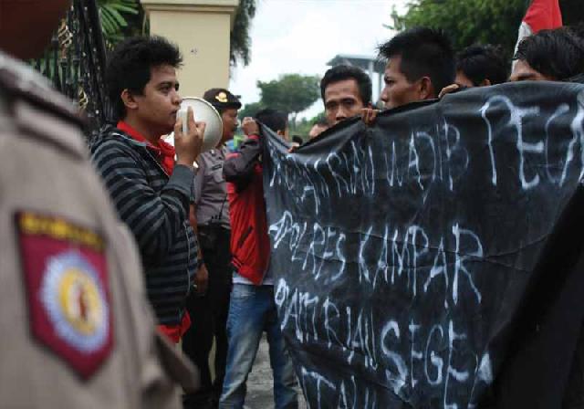 Dengan membawa spanduk warna hitam yang berisikan tuntutan, massa yang dimotori Ricky selaku Koordinator Lapangan, menyebut kalau mereka terdiri dari berbagai elemen organisasi kemahasiswaan yang ada di Kabupaten Kampar.