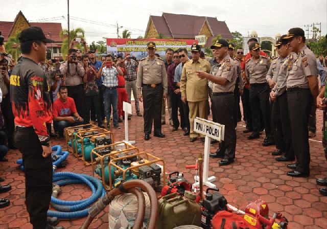 BENGKALIS (HR)- Kapolda Riau, Brigjen Pol Dolly Bambang Hermawan memimpin langsung Apel Forum Masyarakat Gotong Royong melawan kebakaran lahan dan hutan (Karlahut) tahun 2016 di Mapolres Bengkalis yang diikuti 425 peserta, Jumat (12/2).