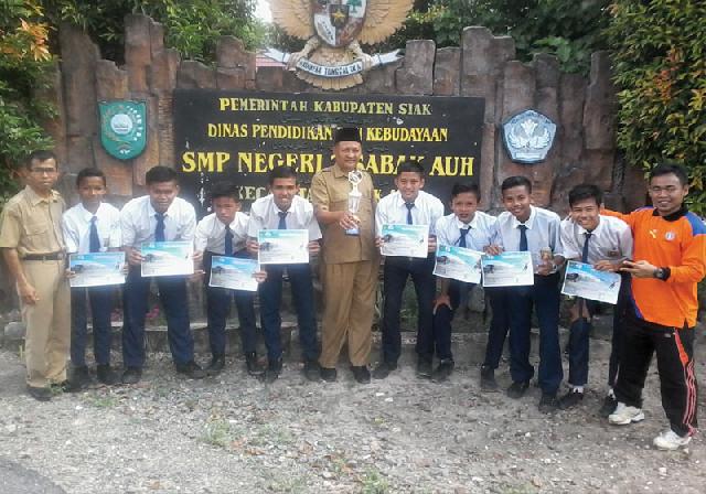 SABAK AUH (riauamandiri.co)-Tim Futsal SMP Negeri 2 Sabak Auh, Kecamatan Sabak Auh tampil sebagai juara 1 lomba Futsal antar pelajar SPM di tiga kecamatan. Kegiatan dalam rangka Hari Ulang Tahun ke-6 SMK Negeri 1 Siak Kecil, Selasa (16/2).