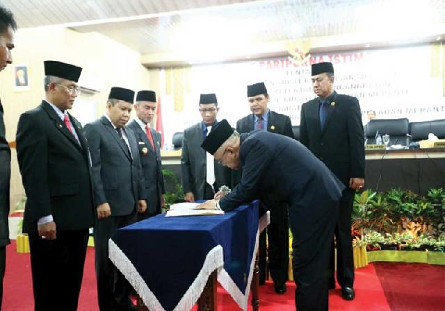 Sekaligus serah terima jabatan Bupati Kepulauan Meranti bertempat di Gedung DPRD Kepulauan Meranti, Jumat (19/2) kemarin.