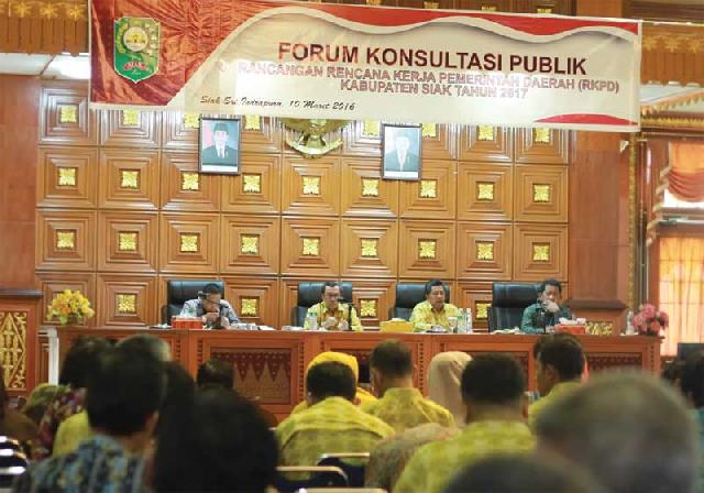 Sebagaimana biasanya, Forum Konsultasi Publik RKPD ini menjadi ajang dengar pendapat antara Kepala Daerah dengan tokoh masyarakat dan SKPD membahas rencana pembangunan Kabupaten Siak kedepan.