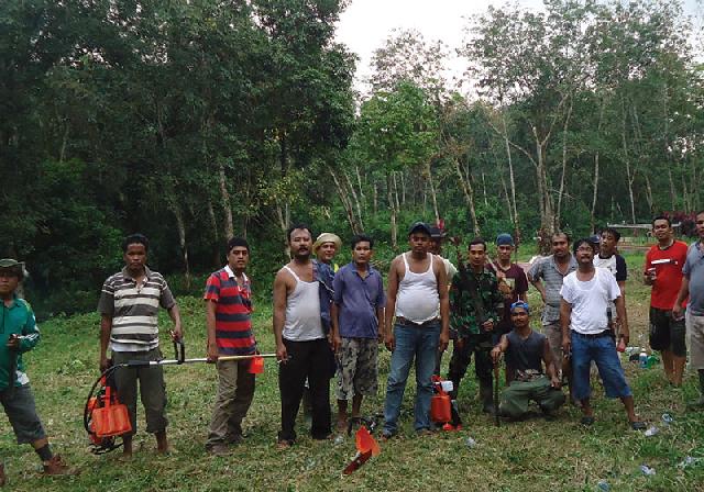 RAMBAH (riaumandiri.co)-Babinsa Koramil 02 Rambah, bersama Ikatan Pemuda Batak Rokan Hulu (IPBR) melaksanakan gotong royong (Goro) di pemakaman umum Desa Suka Maju, Kecamatan Rambah, Kamis (18/3).