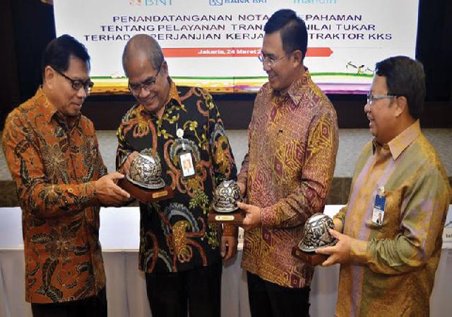 Hal itu ditandai dengan penandatangan nota kesepahaman (memorandum of understanding/ MoU) antara Satuan Kerja Khusus Pelaksana Kegiatan Usaha Hulu Minyak dan Gas Bumi (SKK Migas) dengan PT Bank Rakyat Indonesia Tbk (BRI), PT Bank Mandiri Tbk, dan PT Bank Negara Indonesia Tbk (BNI).