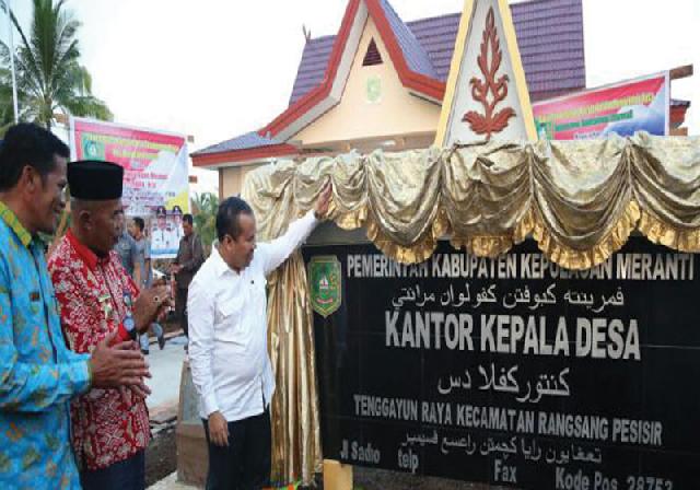 Bupati Irwan dalam sambutannya mengatakan, memuji masyarakat dan pemerintah desa yang bisa mewujudkan kantor desa tersebut. Diakui Irwan, kantor Camat Rangsang Pesisir saja tidak sebagus kantor desa tersebut. “Alhamdulillah pemekaran desa di Meranti secara perlahan menunjukkan hasilnya,” ungkap Bupati bangga.