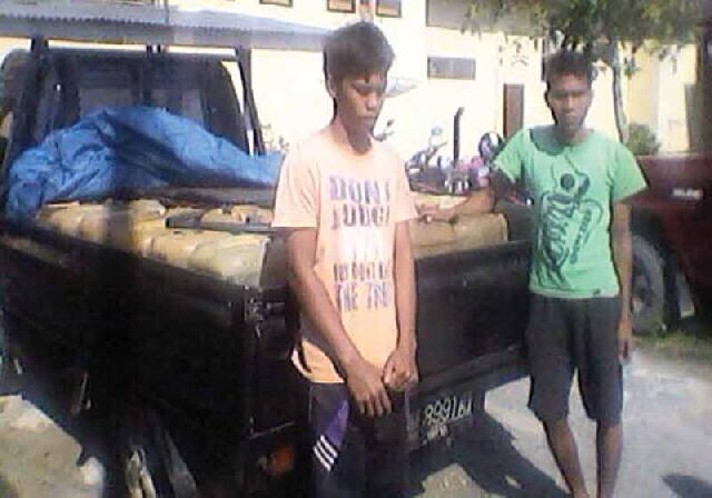 Kedua tersangka kemudian diamankan oleh petugas Kepolisian, bersama mereka turut diamankan sejumlah barang bukti antara lain 2 drum plastik warna biru berisi 140 liter minyak tanah, 4 jerigen berisi 140 liter minyak tanah, uang tunai sebesar Rp 1.310.000 yang diduga merupakan hasil penjualan BBM ilegal ini serta 1 unit mobil Suzuki APV yang digunakan sebagai alat pengangkutannya.