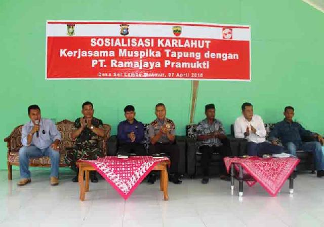 “Sanksinya berat melanggar UU Lingkungan Hidup dengan ancaman hukuman 5 tahun penjara. Jangan sia-siakan hidup kita dengan melanggar hukum,” ujar Kapolsek saat acara sosialisasi bahaya karlahut di Desa Lambu Makmur, Tapung, Kamis (7/4). Kegiatan sosialisasi digelar PT Ramajaya Pramukti bekerja sama dengan Upika Tapung.