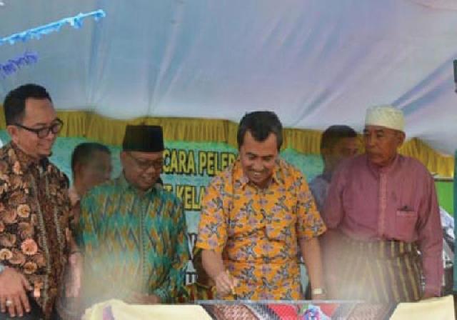 KANDIS(riaimandiri.co)-Bupati Syamsuar meresmikan penggunaan dua ruang kelas baru SMK Baiturrahman Kandis, Sabtu (23/4). Bersamaan dengan ini sekaligus dilakukan pelepasan siswa kelas XII angkatan X.