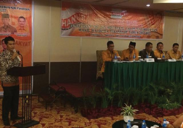 PEKANBARU (riaumandiri.co)-Menjaring balon mana yang akan diusung Partai Hati Nurani Rakyat dalam pemilihan kepala Daerah di Pilwako Pekanbaru 2017 nanti, DPC Partai Hanura Kota Pekanbaru, mengelar uji visi misi bakal calon Wali Kota Pekanbaru, yang telah masuk dalam bursa pendaftaran melalui Partai Hanura.