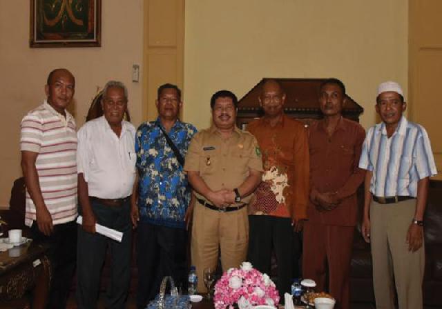 BENGKALIS (riaumandiri.co)- Bupati Bengkalis, Amril Mukminin menerima 6 tokoh masyarakat yang menyampaikan aspirasi dari 8 desa di Kecamatan Pinggir di Wisma Daerah Sri Mahkota, Selasa (10/5). Keenam tokoh tersebut, Albamin H (Desa Tasik Serai Barat), TK Abdul Muthalib, Fitriandi, Sahiman, dan M Salim (Mandau).