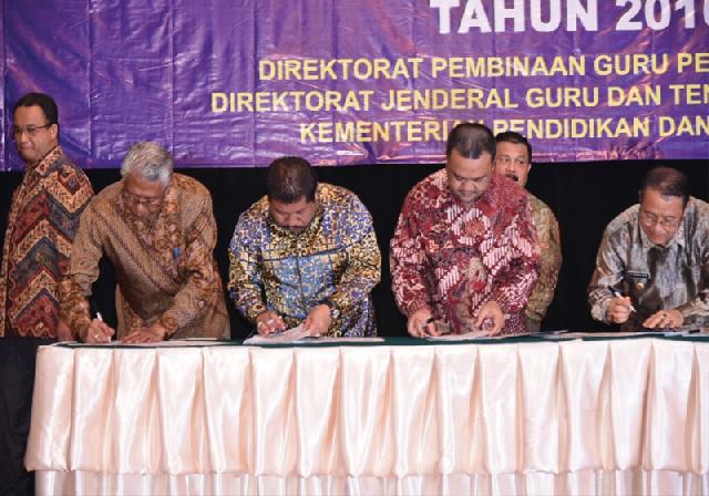 Penandatanganan MoU ini disaksikan Menteri Pendidikan dan Kebudayaan Anies Baswedan, Direktur Jenderal Guru dan Tenaga Kependidikan Kementerian Pendidikan dan Kebudayaan, Sumarna Surapranata.