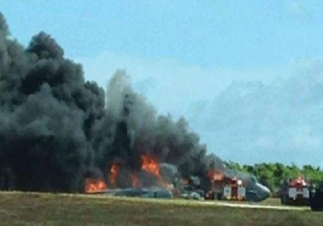Gambar yang beredar di media sosial menunjukkan gumpalan asap membumbung dari reruntuhan pesawat. Angakatan Udara AS segera mengambil tindakan untuk meminimalkan dampak lingkungan.
