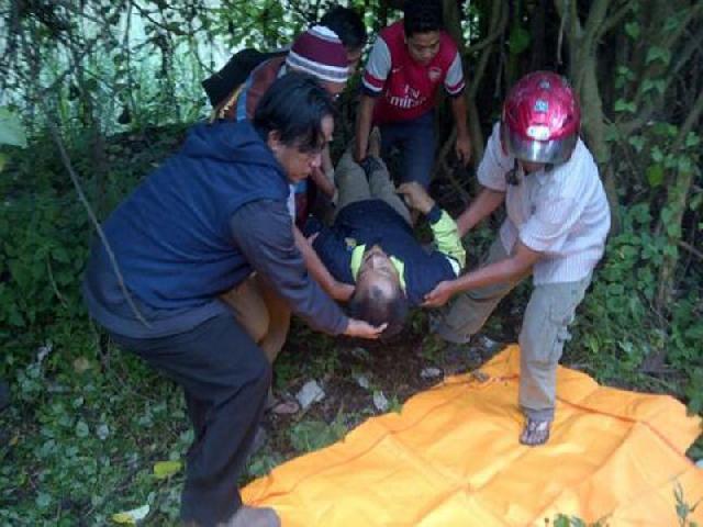 Setelah lebih kurang satu jam lebih sejak ditemukan, ambulance dari pihak RSUD datang ke TKP dan jenazah korban langsung di bawa ke RSUD.(rob)