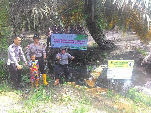 RENGAT (riaumandiri.co)-Dalam rangka memperingati Hari Lingkungan Hidup se Dunia tahun 2016, Polsek Rengat Barat melakukan kampanye penyelamatan lingkungan hidup di lokasi sekat kanal yang dibangun jajaran Polres Inhu dalam upaya pencegahan Kebakaran Hutan dan Lahan, Jumat (22/7).