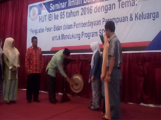 Seminar yang dilaksanakan dibuka langsung Walikota Firdaus, ditandai dengan pemukulan gong, mengangkat tema 'Penguatan Peran Bidan dalam Pemberdayaan Perempuan dan Keluarga untuk Mendukung Program SDGs' atauSustainable Development Goals.