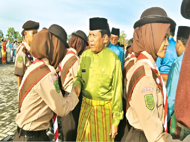 PASIR PENGARAIAN (riaumandiri.co) - Plt Bupati Rokan Hulu (Rohul) H. Sukiman, Senin (8/8) melepas 38 Kontingen Pramuka Rokan Hulu, guna mengikuti Jambore Nasional ke X di Bumi Perkemahan, Cibubur, Jakarta. Plt Bupati Berpesan Kepada seluruh Kontingen agar dapat mengharumkan nama RokanHulu, Serta mempromosikan wisata Rohul ke daerah lain.