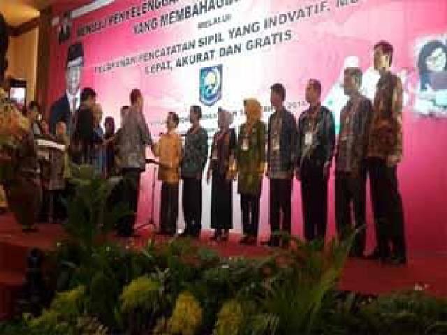 Penghargaan diserahkan oleh Dirjen Kependudukan dan Pencatatan Sipil Prof Dr Zudan Arif Fakrulloh, SH kepada Kepala Disdukcapil Kota Dumai Suardi SSy. Disaksikan langsung Walikota Dumai Drs H Zulkifli AS MSi dan Gubernur Riau Arsyadjuliandi Rachman, di Hotel Aryaduta Pekanbaru dalam kegiatan Rapat Kerja Nasional (Rakernas) Pencatatan Sipil, 24-26 Agustus 2016.