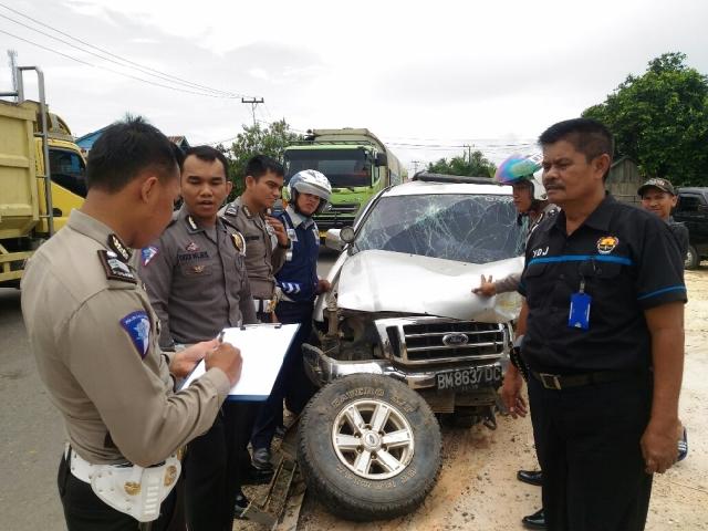 Mobil tersebut menghantam keras tembok jembatan yang berada di jalan raya Rengat Pematang Reba, sehingga menghancurkan bagian depan mobil hingga kebagian dalam yang akibatkan kedudukan dua roda patah, mesin hancur, dan kaca depan pecah.