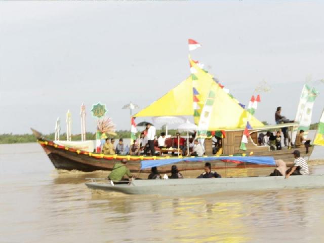 TEMBILAHAN (RIAUMANDIRI.co) - Menyambut Tahun Baru, 1 Muharram 1438 Hijriyah, Desa Sungai Intan Kecamatan Tembilahan Hulu, Kabupaten Indragiri Hilir menggelar festival pompong hias di perairan sungai Indragiri, Senin (3/10).