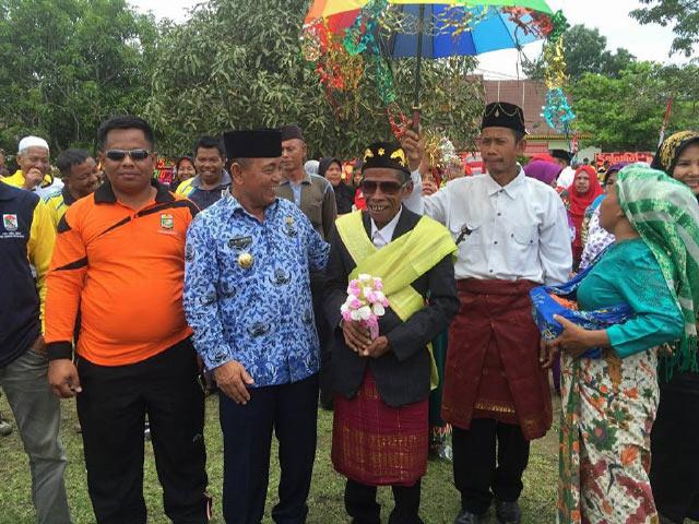 Tak ketinggalan Bupati HM Harris ikut menjadi saksi meriahnya kegiatan Hari Ulang Tahun tersebut. Bupati pun didaulat menyerahkan piagam penghargaan kepada para tokoh pendiri yang telah berjasa mendirikan Kecamatan Bandar Petalangan.