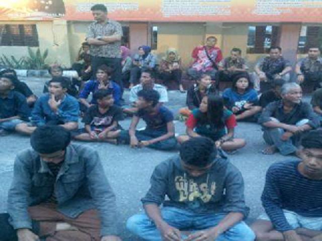 Pantauan di lokasi, 21 orang yang terjaring tersebut dijejerkan duduk di halaman Polresta Pekanbaru untuk didata satu persatu. Mayoritasnya mereka berasal dari luar Kota Pekanbaru.