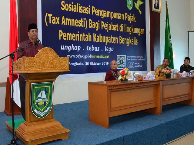 BENGKALIS (RIAUMANDIRI.co) - Bupati Bengkalis, Amril Mukninin mengimbau kepada Aparatur Sipil Negara dan seluruh elemen masyarakat di wilayah berjuluk Negeri Junjungan, agar gencar mensosialisasikan program pengampunan pajak yang diberikan oleh Pemerintah kepada wajib pajak. Karena hal tersebut, berkaitan dengan perekonomian negera dan kemakmuran rakyat.