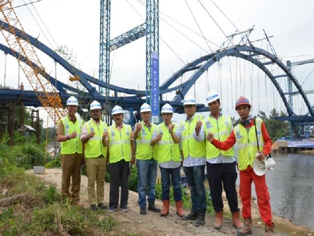 "Sejauh ini pembangunan jembatan tersebut sudah mencapai lebih kurang 85%, di mana untuk saat ini pembangunan jaringan tangan di bagian atas sudah selasai.
