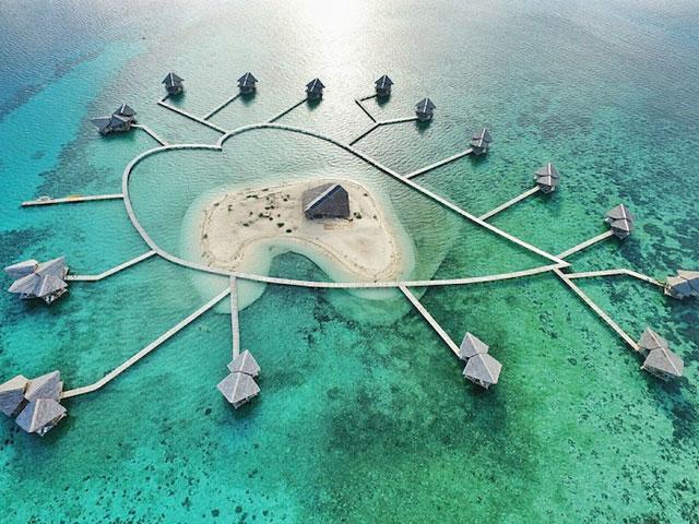 Bentuknya yang unik, keindahan alamnya, dan cerita romantis di baliknya menjadikan tempat ini cocok untuk mereka yang sedang mencari ketenangan atau berbulan madu. Selain menikmati pemandangan laut dari dalam kamar, tamu resor juga bisa menyelami keindahan bawah lautnya, memandang bintang di malam hari, atau menjelajah Pulau Harapan. (mer/ivn)