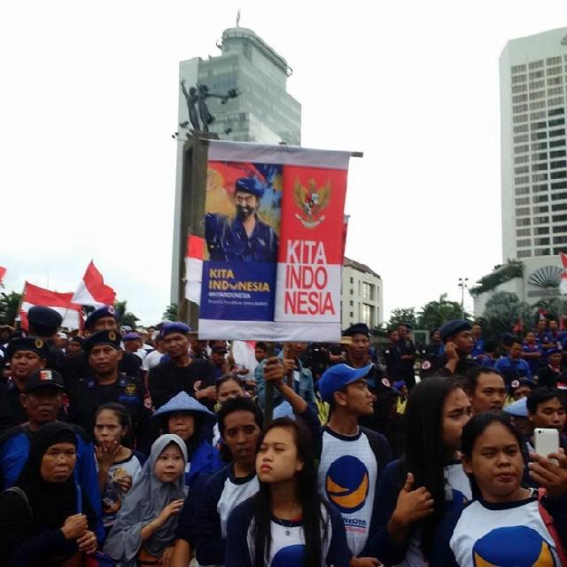 Peserta Aksi 412 Pakai Atribut Partai NasDem (Foto: Nasional)
