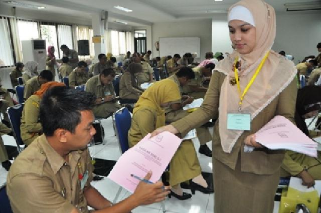 PASIR PENGARAIAN (RIAUMANDIRI.co) - Sebanyak 147 orang Pegawai Negeri Sipil (PNS) di lingkungan Pemerintahan Kabupate Rokan Hulu, mengikuti ujian dinas dan ujian kenaikan pangkat penyesuaian ijazah yang ditaja oleh Badan Kepegawaian Daerah (BKD) setempat bekerjasama dengan BKN di H Sapadia Pasir Pengaraian, Selasa (20/12).