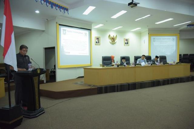 BANGKINANG (RIAUMANDIRI.co) - Anggota DPRD Kabupaten Kampar kembali mengelar rapat paripurna dengan agenda penyampaian laporan Komisi I hasil fasilitasi Gubernur Riau terkait perubahan nama Kecamatan Kampar Timur menjadi Kecamatan Kampa pada Rabu (21/12) malam.
