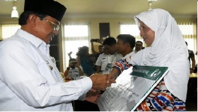TEMBILAHAN (Riaumandiri.co) - Bupati Indragiri Hilir HM Wardan menyerahkan kartu Jaminan Kesehatan Nasional (JKN)-Kartu Indonesia Sehat (KIS) secara simbolis kepada peserta Penerima Bantuan Iuran (PBI) Anggaran Pendapatan dan Belanja Daerah (APBD) Kabupaten Inhil, Rabu (14/12/2016).