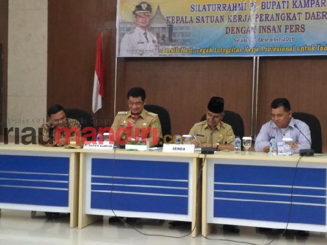 BANGKINANG (RIAUMANDIRI.co) - Penjabat Bupati Kampar dan sejumlah Kepala Satuan Kerja Perangkat Daerah (SKPD) gelar silaturahmi denga insan pers yang digelar di Aula Kantor Bupati, Selasa (27/12).