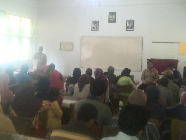 Kepala SD Negeri 01 Buantan Lestari mengadakan rapat bersama wali murid membahas masalah buku pelajaran yang belum disahkan oleh Menteri dan mencari solusinya (Foto: Sugianto)