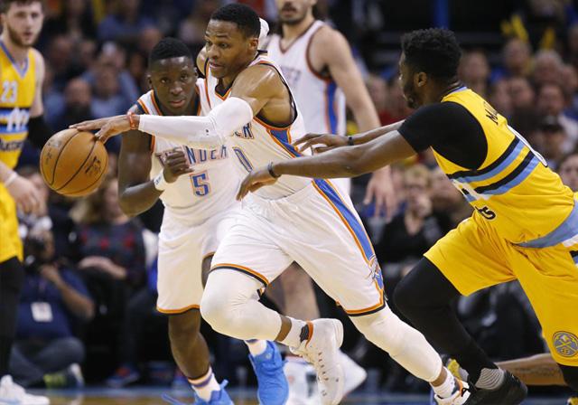 Oklahoma City (riaumandiri.co)-Russell Westbrook jadi bintang kemenangan Oklahoma City Thunder yang berjaya dengan skor 121-106 ketika menjamu Denver Nuggets.