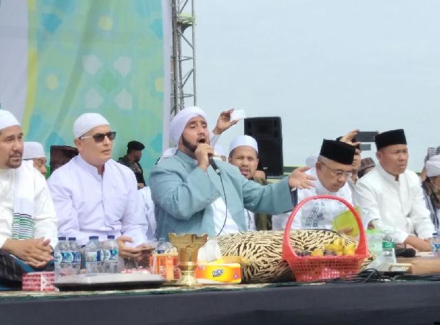 "NKRI dibela sampai mati," ucap Habib Syech, diikuti oleh ribuan umat yang hadir sejak awal hingga akhir acara.