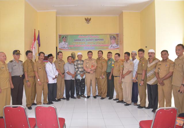 SALO (riaumandiri.co)-Pj Bupati Kampar Syahrial Abdi didampingi Asisten I Pemerintahan Ahmad Yuzar dan Camat Salo, Fajri Hasbi bersilaturahmi dan berdialog bersama masyarakat, tokoh adat, tokoh masyarakat dan aparatur Kecamatan Salo serta Kepala Desa di aula Kantor Camat Salo, Senin (16/1).