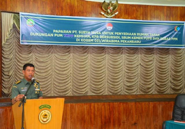 PEKANBARU (RIAUMANDIRI.co) - Seluruh Prajurit dan PNS jajaran Korem 031/Wirabima mengikuti sosialisasi BUM YKPP Kemhan RI dan KPR bersubsidi di wilayah Korem. 031/Wirabima. Penyediaan perumahan yang dinantikan oleh para prajurit serta PNS TNI.Melalui bantuan uang muka program reguler aktif Yayasan Kesejahteraan Pendidikan dan Perumahan (YKPP) Kementerian Pertahanan RI tahun 2017 dengan fasilitas KPR BTN.