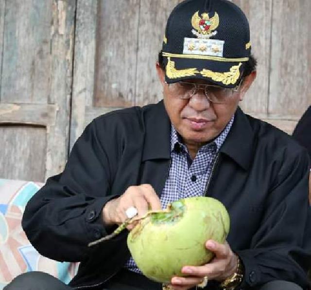 Bupati HM Wardan Mencoba Buah Kelapa Unggul Sri Gemilang