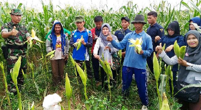 Koramil Rambah Bersama Dinas TPH Panen Jagung Bersama