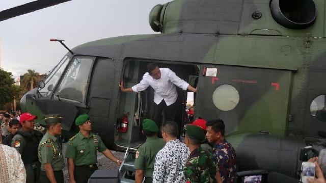 Presiden Jokowi meninjau salah satu helikopter milik TNI AD, dalam pameran yang digelar beberapa waktu lalu. Panglima TNI Jenderal Gatot Nurmantyo menegaskan, TNI tidak akan lagi menerima hibab alutsista dari negara lain.