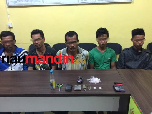 SELATPANJANG (RIAUMANDIRI.co) - Jumat (24/2) dini hari tadi sekitar pukul 00.30 WIB, SatRes Narkoba Kepulauan Meranti menangkap 5 orang pelaku tindak pidana narkotika, diduga jenis shabu.
